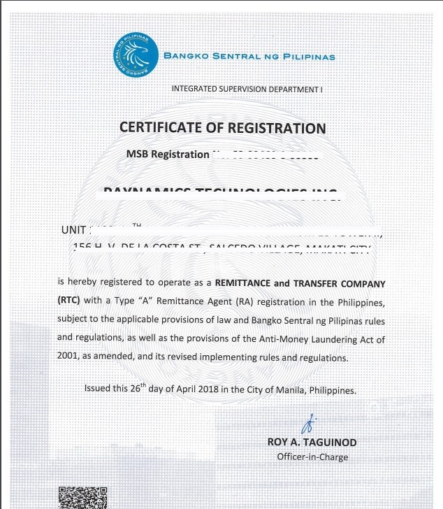 BSP Certificate of Registration