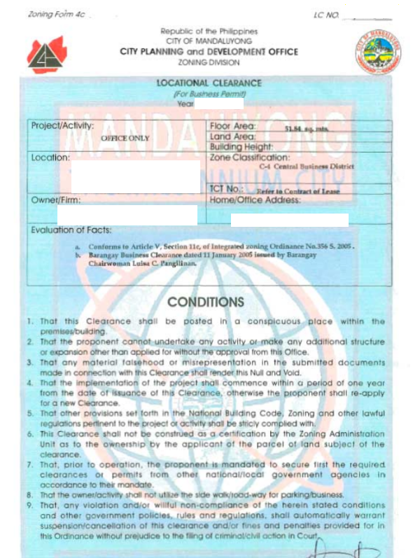 A Locational and Zoning Clearance is an official document issued by the local government—typically through the City or Municipal Planning and Development Office—to certify that your business or construction project complies with local land use and zoning ordinances. It is a key requirement for obtaining a business permit. Read more also Business Registration >>>