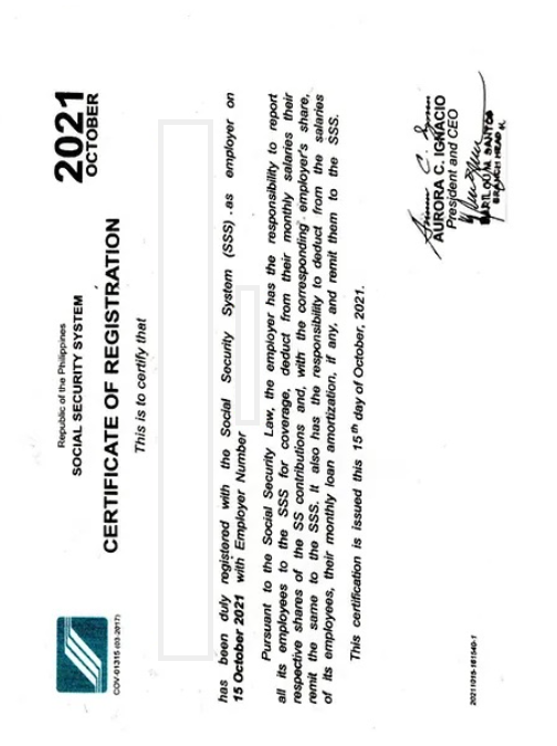 SSS Certificate of RegistrationÂ